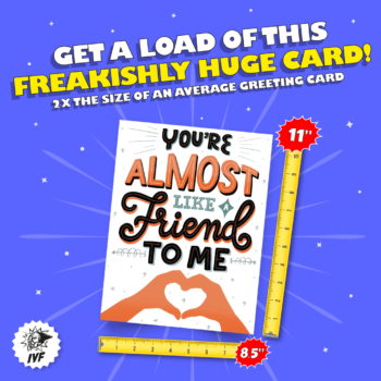Face it, you’re amazing, one of the best in the history of mankind. To know you is a privilege, to be your friend, a divine gift not so easily granted. Does Jim think just because you’ve known him since second grade and he gave your daughter a kidney that he deserves to be bestowed with the gilded mantle of your friendship? Ha! With this card, you can remind the Jims in your life that you have all the power, but if they’re really lucky and do all the right things, maybe someday they’ll get to call you the “f” word. I mean probably not, but it is Jim’s birthday after all. Let him dream.