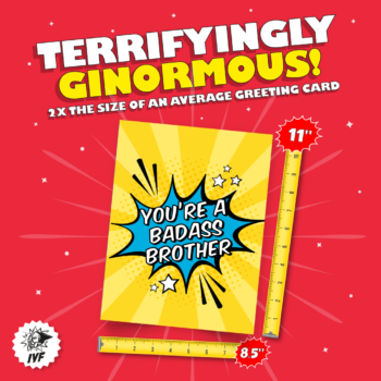 Brah. Bruh. Broham. Brozilla. Brosephine. There are so many terms to express the connection one feels to a particularly stellar dude. Sometimes brother means a man who emerged from the same womb you did. Sometimes brother means a guy who’s been boning your sister so long that they made it legal. Or a brother can just be a really cool dude who helped you bury that hitchhiker back in ’97 and swore he’d never tell a soul about it. Any way you slice it (and boy did you slice it back in ’97), when your brother has a birthday, it’s only right to get him this legendary card. It’s as big as your everlasting bromance.