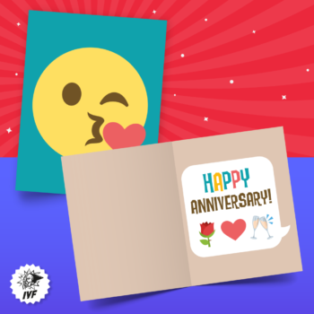 Face it – words are the worst. Even if that sea witch hadn’t stolen your vocal chords in exchange for the ability to walk on dry land, it still totally sucks to actually have to elucidate a thought using the written language. Whoever invented emojis was a literal angel from heaven. That’s why we’ve made this lovely giant Emoji Anniversary card for you. Why try to use gross stupid words to explain the depths of your passion when you can use a smiley face making a kissy kiss? Save your words for screaming in bed later, if you know what we mean, wink wink (we mean because of the horrible unending nightmares about what the sea witch is doing with your vocal chords).