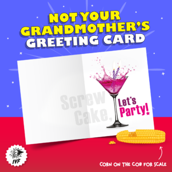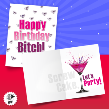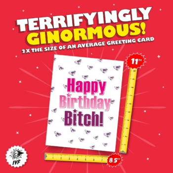 Ah, birthday cake. It used to be a given, the centerpiece of any birthday celebration. But these days, between food allergies, vegans, and gluten-phobes, birthday cake has become a political minefield. You know what’s always gluten-free and doesn’t hurt farm animals? Straight up vodka, that’s what. Treat your birthday bitch right with the gift that fits any size and this massive card.