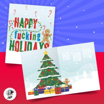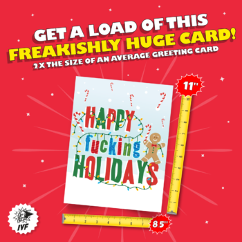 NOOOOOOO you haven’t gotten your friend/family member/loved one/tolerated one a holiday card yet! Hey, no prob, we got you covered. Look at this gingerbread man, he’s so cheery and so vulgar. Do you know what that icing really is? Gingerome does. Yes, that’s his name and his voice is disturbingly deep. Disturb and cheer those who are near and dear with this holiday classic.