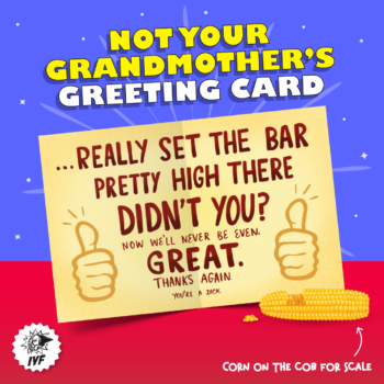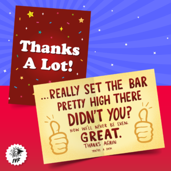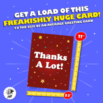 Gratitude is an attitude, but sometimes it’s hard not to get the wrong kind of attitude when thanking someone. After all, philosophers like Nietzche have postulated that there is no such thing as a truly selfless act. Ergo, who’s to say that your stupid rich brother didn’t pay for your wife’s emergency appendectomy just to make himself feel like a big shot? Because the matching ponies he gave your kids last year for Christmas weren’t enough? So give someone who did something major a big old thank you with this big old thank you card that lets them know you know where their heart is – in their own butt.