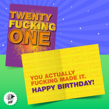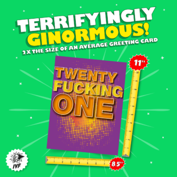 Ho boy, looks like someone is turning twenty one, and you know what that means – time to put down the airplane glue and start getting zozzled legal-style! Toast your special someone who is on the verge of their very first legal blackout with this big bold beautiful card screaming their age, just like they’ll be screaming it in the bartenders’ faces all night long. Prost!