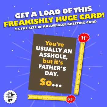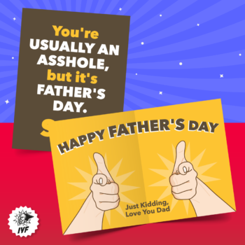 If there’s anything that years of discount psychotherapy out of the back of a combination Pizza Hut and Taco Bell have taught us, it’s that the longest lasting bonds are forged in constant emotional uncertainty. With Dr. Pepperonistein’s help, we crafted this Father’s Day card to make sure old Pops doesn’t know exactly where he stands with you. Are you still mad at him for that time in 1993 when he missed your karate recital or are you just joshing? Keep him guessing and keep that river of paternal love flowing!