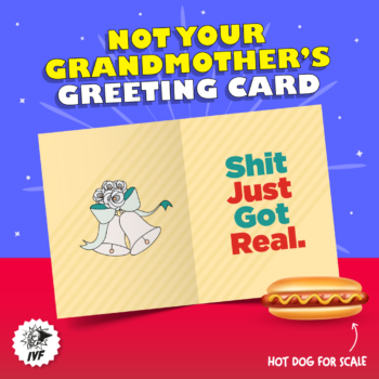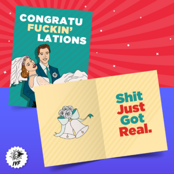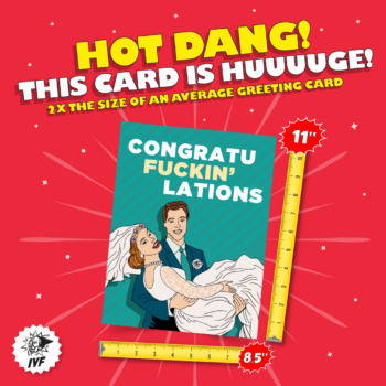 Constant glitches in the matrix have you questioning reality again? Well take it from us, nothing is realer than marriage. That’s why we made this card. We’re not suggesting you go out and get yourself hitched just so you can get a stable grip on the tattered gyrating fabric of existence, but we are suggesting you congratulate your friends and loved ones for doing so!